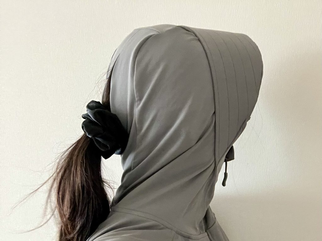 海などのレジューに行く時には、髪を結ぶことが多いため、フードを被ると髪の毛が一ヵ所に寄ってしまうことも悩みの一つでした。