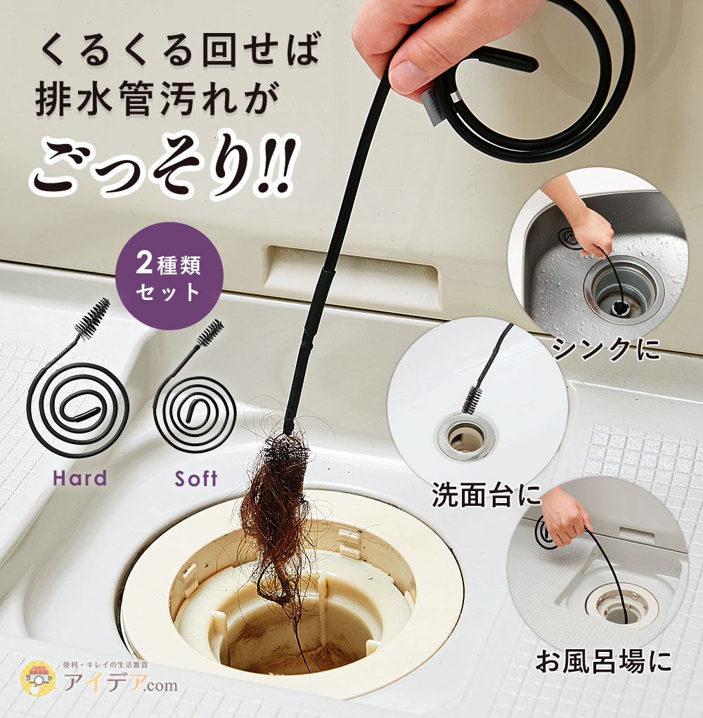 ハードタイプはお風呂やシンクに、ソフトタイプは洗面台にピッタリ!2種類を分けて掃除することで、水の流れの悪さや排水口のニオイを解消できます!また、ドラム式洗濯機の埃取りにもおすすめです。