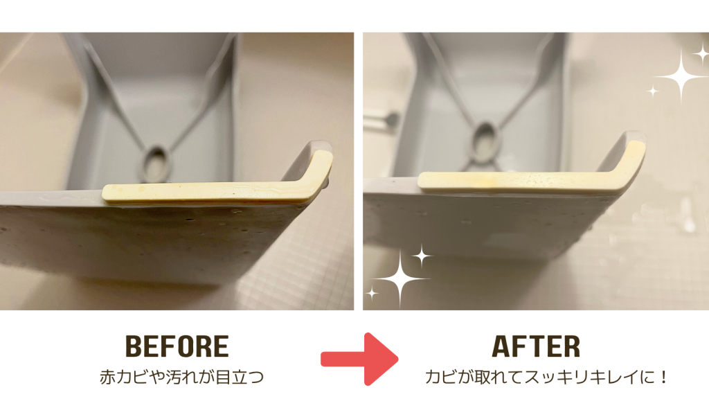 - 頑固な皮脂汚れや赤カビもキレイに落ちる