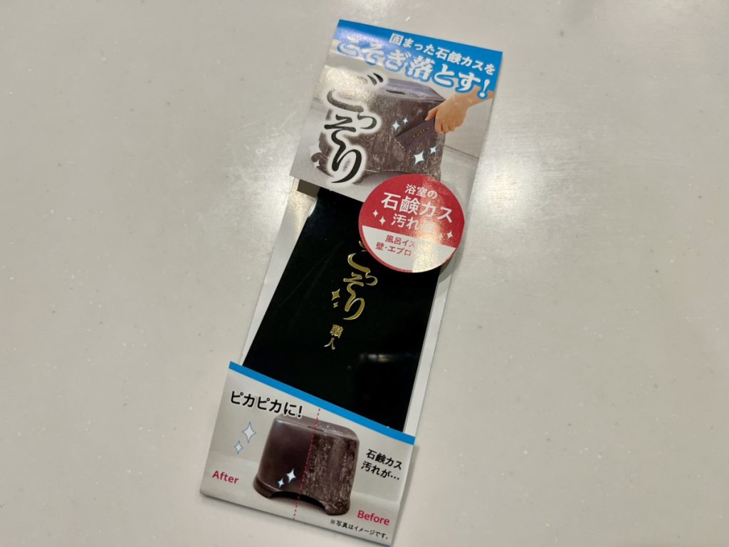 お風呂の小物や手すりの部分についたしつこい石鹸カス。ピカピカに掃除したいけれど、なかなか取れずに諦めていました。そんな時に見つけたのが『石鹸カスごっそり職人』です。