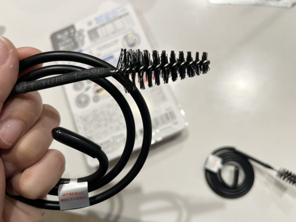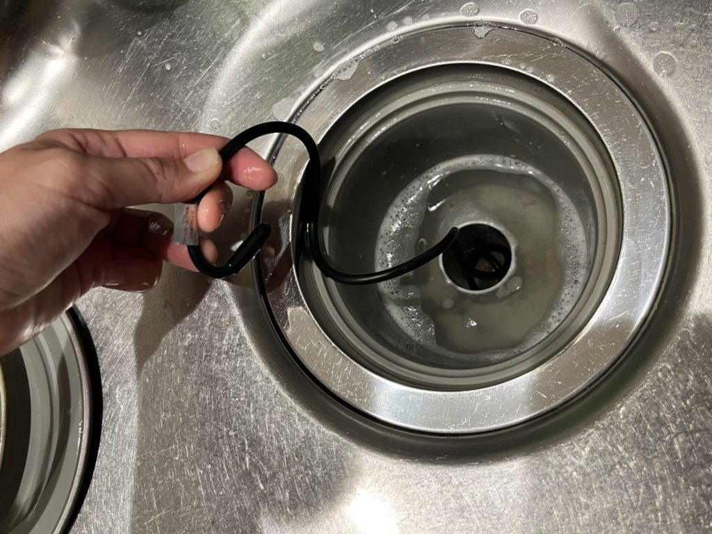 次はハードタイプを使って、キッチンのシンクを掃除します。ハードタイプはワイヤーが太くて硬いため、シンクやお風呂の排水口などにおすすめです。