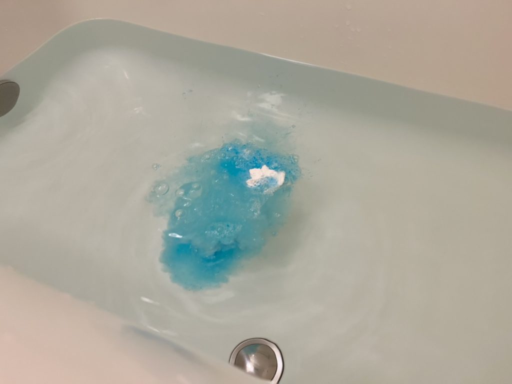 最初は青色で洗浄がスタートしますが、4〜6時間放置すると透明に色が変わります。