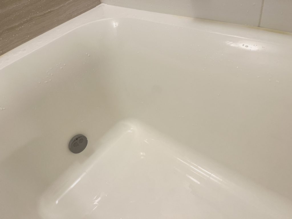 浴槽はお湯を流してから水でよく洗い流し、汚れが残っていたら軽くスポンジで洗います。