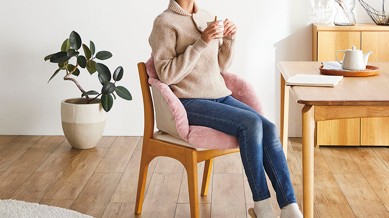 まるで、暖房ひとりじめ。暖房をつけずに快適空間を作り出せる、背もたれ付き1人用クッションです。