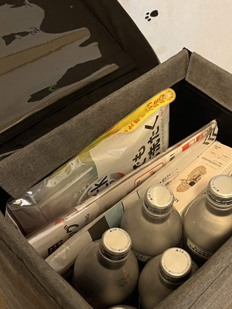 非常食は缶詰、レトルト、お菓子など、普段の食卓に並ぶものを中心に選びます。