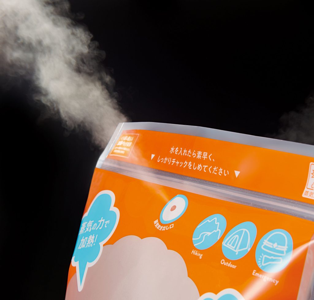 お湯がなくても温かい食事を作れる「蒸気のチカラで!HOT HOT PACK」