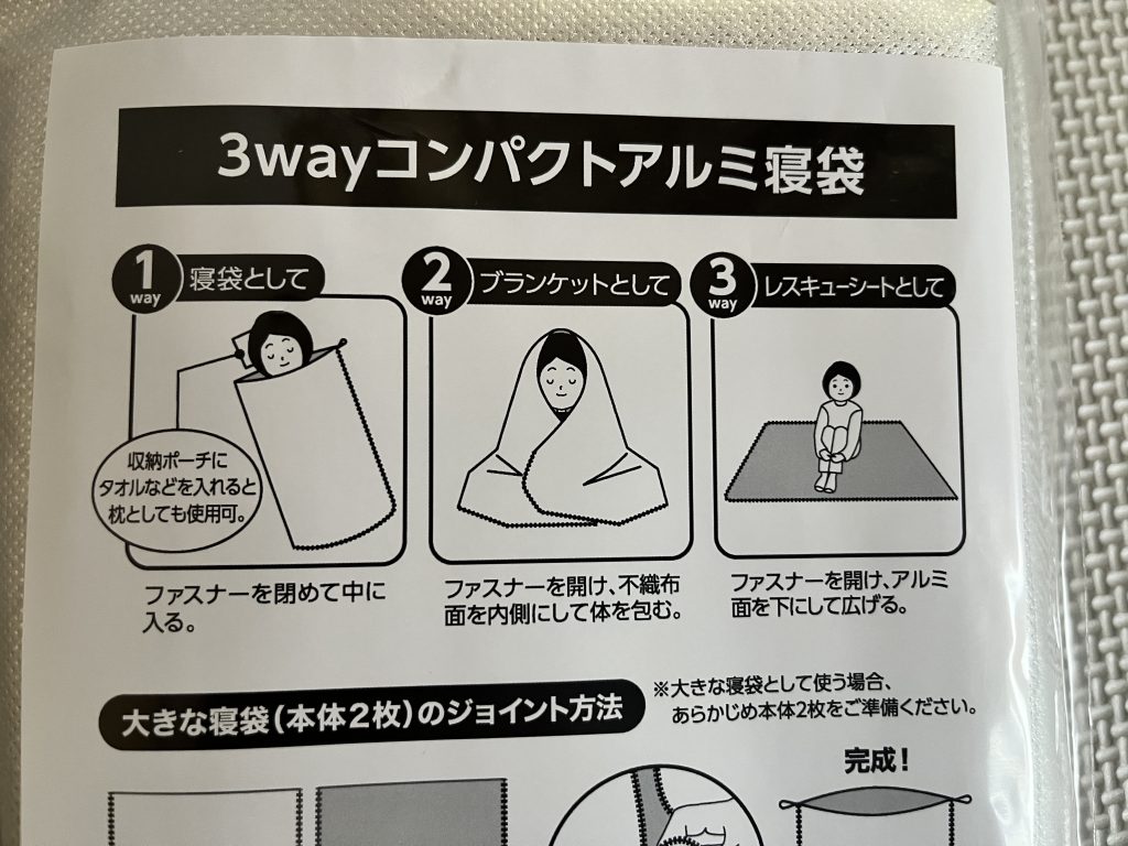 冬の災害対策でぜひそろえておきたいのが「3wayコンパクトアルミ寝袋」です。