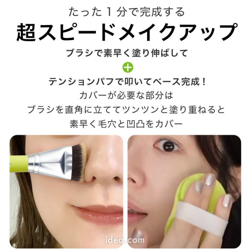| 目的 | ベースメイク 化粧崩れ防止 毛穴補正 くすみ隠し ナチュラル肌演出 時短メイク デートメイク オフィスメイク 韓国風メイク 高カバーメイク 特別な日用 日常メイク スキンケア後使用 ベース補強 ファンデ密着アップ 持ち運び直し用 敏感肌対応 メイク直し 美肌演出 プロ仕上げ体験 |