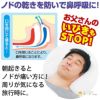 | ■使用上のご注意 | ●鼻がつまったり、鼻に疾患のある方は使用しないでください。●傷、はれもの、かぶれなど肌に異常がある時はご使用にならないでください。●お肌の弱い方、アレルギー体質の方、絆創膏や、テープ類でかぶれやすい方はご使用にならないでください。●使用中、使用後に気分が悪くなったり、身体に異常があらわれた場合は直ちにご使用をお止めください。●使用中、使用後に赤み、はれ、かゆみなどの異常があらわれた場合は直ちにご使用を中止し、皮膚科専門医などにご相談ください。●本品を剥がす際、無理やり強く剥がすと、皮膚を傷める可能性がございます。ぬるま湯で本品を湿らせ、ゆっくりと剥がしてください。●万一、皮膚側に接着剤が残った場合は、ぬるま湯で湿らせたきれいな布でゆっくりと拭き取ってください。強く擦ると、皮膚を傷める場合がございます。●衛生上、一度使用したものは使わないでください。●初めて使用する方は、事前に目立たないところでパッチテストを行ってからご使用ください。●お子さまは使用しないでください。また手の届かない所に保管してください。●飲み込まないでください。●直射日光や高温・多湿の場所を避け、できるだけ涼しいところで保管してください。●使用感には個人差があります。●本来の用途以外には使用しないでください。 | ||