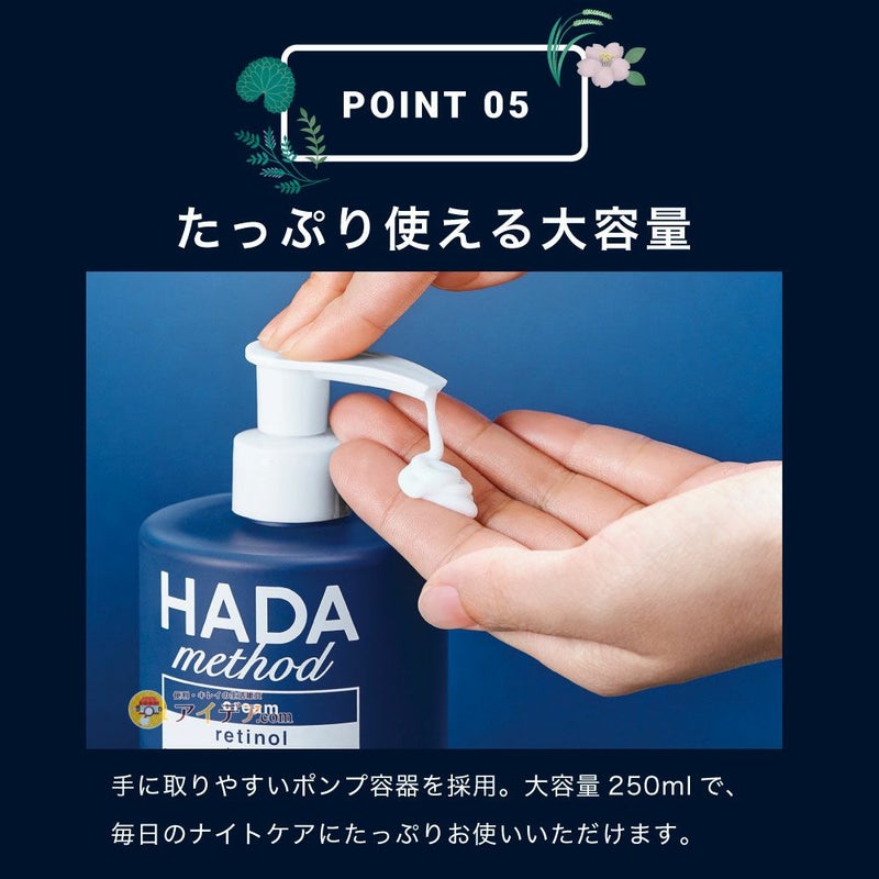HADA method レチノペアクリーム LIPSベストコスメ2023 下半期こだわりアワード ボディケア部門保湿力賞2位 LIPSベストコスメ2023 下半期こだわりアワード ボディケア部門伸びの良さ賞2位 ![]() “日本の肌に” 日本独自処方で日本人の肌にあう スキンケアアイテムを 世界のトレンド成分を日本独自処方で設計するスキンケアブランド。 日本人の肌に合うように日本古来の植物成分であるツボクサエキス・ドクダミエキス・シソ葉エキス・イノシット(イノシトール)・サクラエキス(ソメイヨシノ葉エキス)・グリチルリチン酸 2K・ハトムギエキス(ハトムギ種子エキス)も配合。 忙しい毎日にも手軽に使えて、肌なじみが良く、安心感のあるスキンケアアイテムを。 ![]() ![]() ![]() ![]() ![]() ![]() ![]() ![]() ![]() 手に取りやすいポンプ容器を採用。 ![]() ![]() ![]() ![]() 保湿効果でつるふわ肌に。乾燥ごわつきをケア。 ・FINEBOYS+plus BEAUTY vol.8 レチノール特集のページで紹介されました。 ![]() |