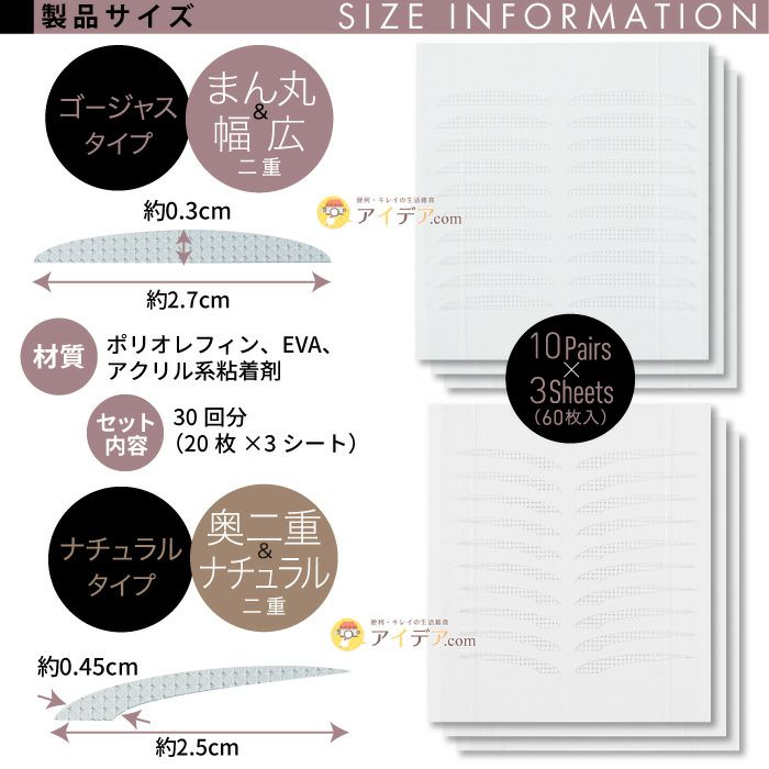 | ■製品サイズ(約) | ゴージャス:0.3×2.7㎝ ナチュラル:0.45×2.5cm | ||
