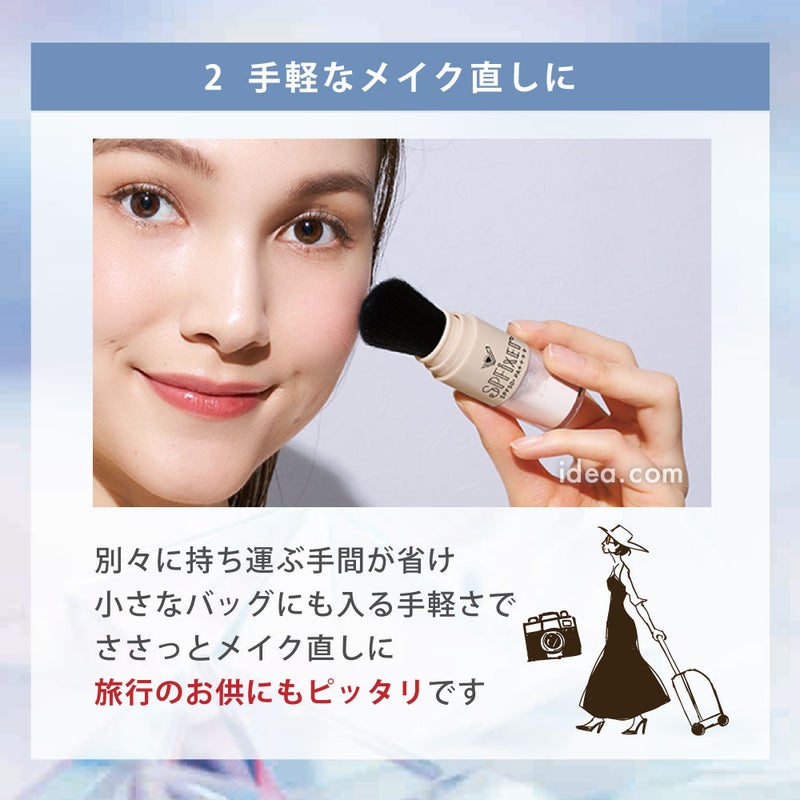 外出先でも手軽にメイク直しと紫外線対策をしたい方へ。 「SPFixer UVブラッシュアップパウダー」は、ブラシとパウダーが一体化した設計で、ひと塗りで肌を整えながらUVケアができる便利なアイテムです。
