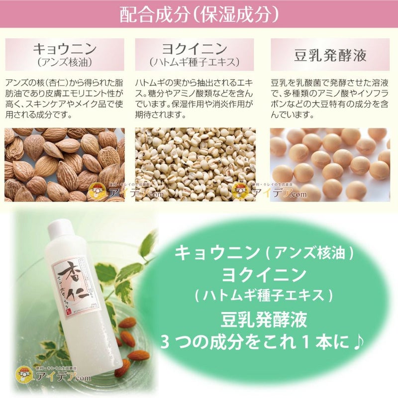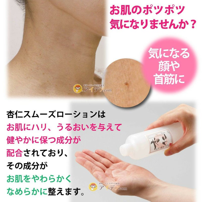 | 気になる顔や首筋に。古くなった角質層を柔らかくしてお肌をつるつるに! 杏仁スムーズローション ![]() すぐに購入したい方はこちら お肌のポツポツ 気になりませんか? 古くなった角質層を柔らかくしてつるつるにしてくれる【杏仁スムーズローション】は、お肌にハリ、うるおいを与えて健やかに保つ成分が配合されており、その成分がお肌をやわらかくなめらかに整えます♪ ![]() ![]() ![]() ![]() ![]() ![]() エモリエント効果(皮膚に潤いと柔軟性、栄養分を保たせる効果)のあるキョウニン 、保湿作用や消炎作用が期待されるヨクイニン(ハトムギ種子エキス 、コラーゲン産生を促し、美肌効果を発揮する豆乳発酵液 を配合の杏仁スムーズローションは、アナタのお肌を助けます! いつまでも若々しい、きれいな肌のために… 杏仁スムーズローション。 |