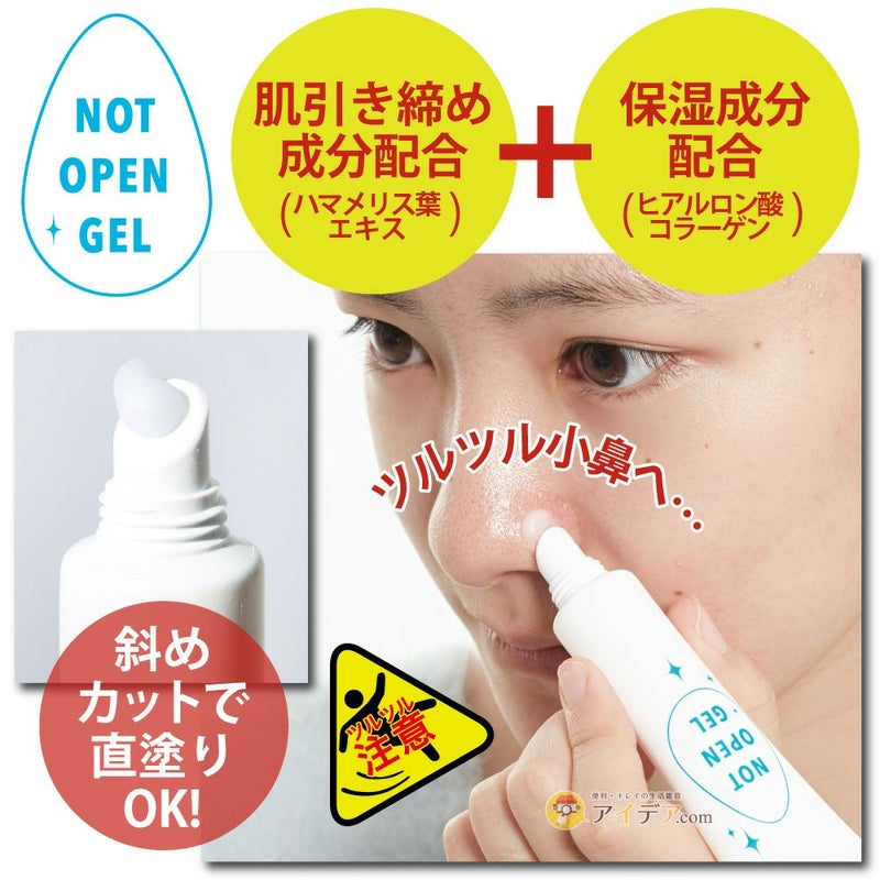 | クールに肌を引き締め&保湿!角栓除去後のアフターケアで小鼻ツルツル ノットオープンジェル ![]() 「ノットオープンジェル」は、角栓除去のお手入れ後のお肌をクールに引き締め&保湿し、ツルツル小鼻へ導くひんやりジェルです。ケア後の角栓がなくなった毛穴に、しっかりなじんでお肌を整えます。 小鼻だけではなく、乾燥が気になる目元など気になる部分に塗ってもOK! ![]() ![]() ![]() ![]() ![]() ![]() ![]() 肌引き締め成分配合(ハマメリス葉エキス)+保湿成分配合(ヒアルロン酸コラーゲン)入り♪ 斜めカットで直塗りできて便利!スウィートミントの香りつきで使い心地もナイスです♪ |