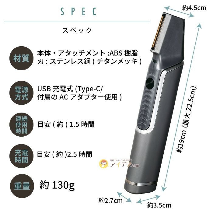 | ■材質 | 本体・アタッチメント:ABS樹脂 刃:ステンレス鋼(チタンメッキ) | ||