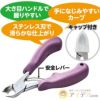 ■使用上のご注意 | ●本品は爪切り専用のニッパーです。●ペンチ代わりにするなど、爪切り以外の目的でのご使用は刃が外れたり変形する恐れがあり大変危険ですので、絶対におやめください。●ご使用前に刃先に割れや欠け、変形などがないかご確認の上、ご使用ください。万一、異常が認められた場合は、ご使用にならないでください。●本品は刃先が鋭利になっておりますので、お取り扱いには十分ご注意ください。●使用しない時は、キャップをしてお子さまの手の届かない所に保管してください。また、足元や落下の恐れのある高所などには保管しないでください。●深爪など爪の切りすぎにはご注意ください。●水洗いは出来ません。使用後は必ず汚れや水分を拭き取り、通気性の良い場所で保管してください。汚れや水分が残っていると、さびや変色の原因となります。また、拭き取る際は刃でケガをしないよう十分ご注意ください。●本品を水まわりや、湿気の多い所に放置しないでください。●長期間、保管される場合は、市販のサビ止め油などを刃部に塗布し、キャップをして保管してください。●火気に近づけないでください。●使用感には個人差があります。 | ||