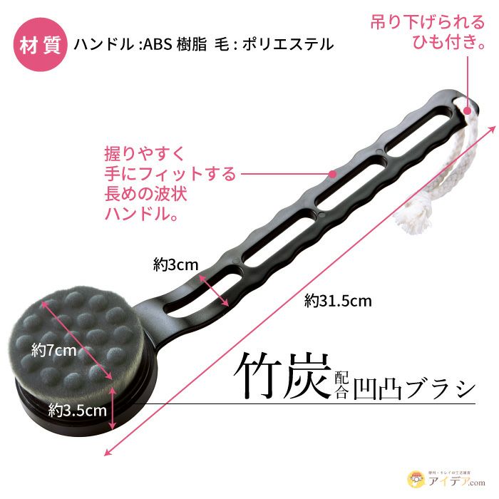 | 竹炭配合凹凸ブラシで全身泡美肌に 透明肌 竹炭ボディロングブラシ ![]() 何を使ってボディ洗いしていますか? タオル? 手のひらで…という方もいらっしゃるかもしれません。 タオルや手で洗うと毛穴汚れや角質はなかなか落ちません。気持ち良い洗い上がりのためにも、竹炭を配合した凸凹ブラシで美肌に導く、この【透明肌竹炭ボディロングブラシ】をオススメします! ![]() ![]() ![]() ![]() ![]() ![]() とろけるような極細毛70万本!毛穴汚れ&角質をスッキリOFF。長めの波状ハンドルは握りやすく、手にぴったりフィットし、洗いやすい設計に。 手の届きにくいところまでしっかり洗える♪ 極上の肌触りのボディブラシと濃密な泡で至福のバスタイムを。 |