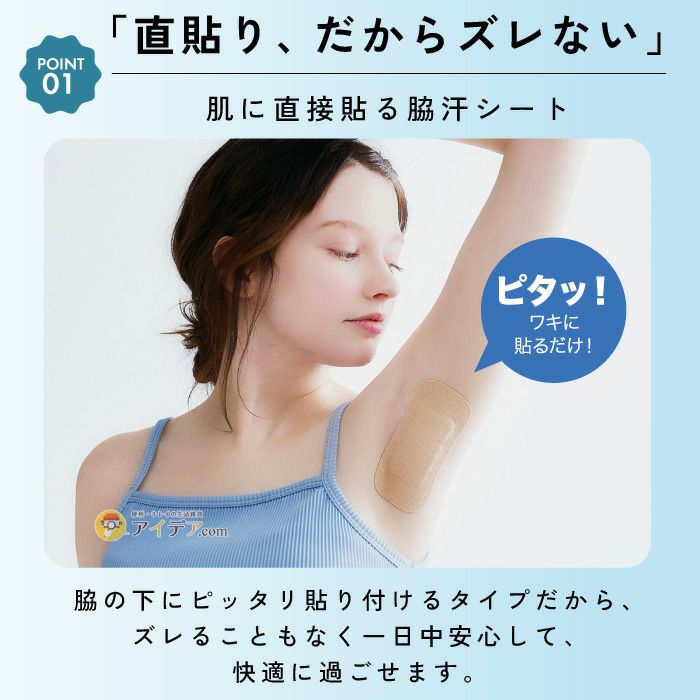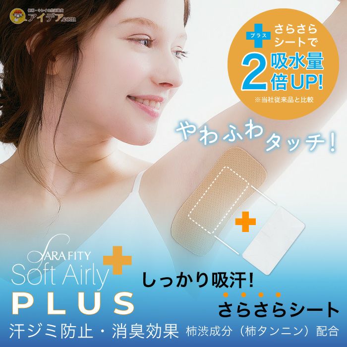| 直貼りシート+さらさらシートで吸水量2倍UP! サラフィッティソフトエアリープラス ![]() ![]() ![]() ![]() ![]() ![]() ![]() ![]() ![]() ![]() ![]() ![]() 脇の下に汗をかいて恥ずかしい思いをした事ってありませんか?自分では知らないうちにワキに汗をかいていて、腕を上げると服に汗ジミが…なんて慌てたことって誰でも一度は経験ありますよね。 【サラフィッティソフトエアリープラス】は、消臭効果のある直貼りシートに肌にやさしいさらさらシートをプラスして吸水量2倍UP!しっかり吸汗!ワキにピッタリ貼り付けるタイプだから、ずれることもなく一日安心して、快適に過ごせますよ♪汗ジミ防止・消臭効果が期待でき、やわふわタッチで快適です♪ |