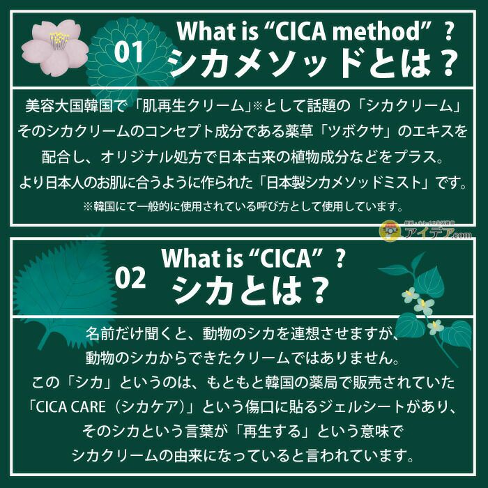 | シカクリームのコンセプト成分“ツボクサエキス”を配合した美容液ミスト CICA method MIST ![]() 美容大国韓国で【肌再生クリーム】として話題のシカクリーム。そのシカクリームのコンセプト成分である薬草【ツボクサエキス】を配合し、オリジナル処方で日本古来の植物成分をプラスした、ミストタイプの化粧水が、この「CICA method MIST」です♪ 細かい粒子でお肌にうるおいを与えます。 ![]() ![]() ![]() ![]() ![]() ![]() ![]() ![]() ![]() 洗顔後の保湿や、メイクの仕上げに。メイクの上からも使えるので、メイク直しにもオススメです。 エッセンシャルハーブのすっきりナチュラルな香りも女子度をUPさせてくれますね。 ![]() |