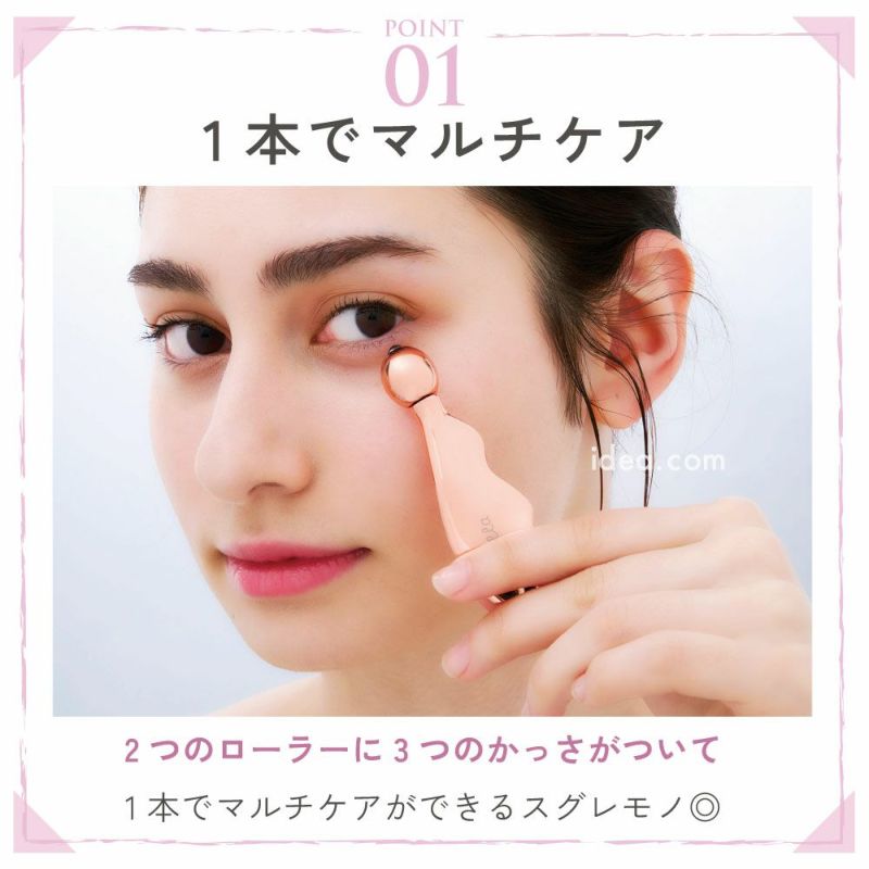 忙しい毎日でも「ながら美容」でOK!美顔ローラー・かっさ・ポイントケアの3役をこれ1本で実現。温感×冷感のW効果で、あなたの素肌をもっと輝かせる自信のアイテムです。