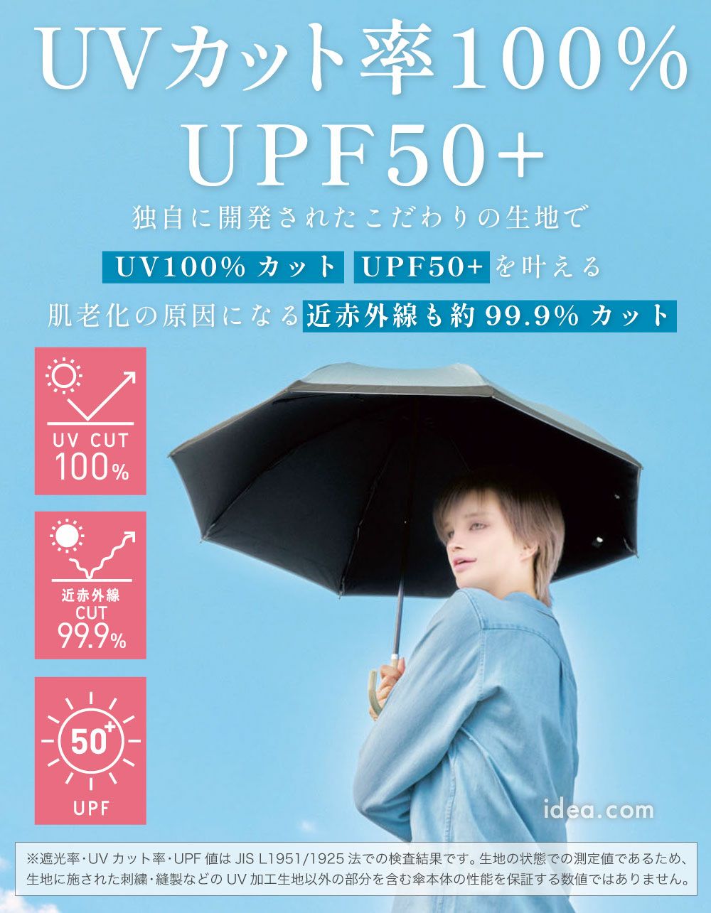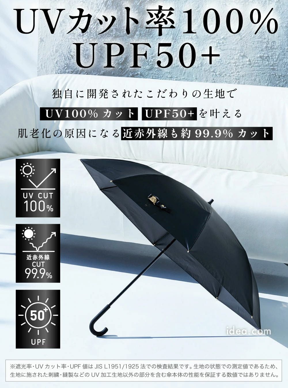 日傘を選ぶ際によく目にする「UVカット率100%」と「遮光率100%」は、意味が異なります。 UVカット率は紫外線のみをどれだけカットできるかを示す数値であるのに対し、 遮光率は紫外線に加えて可視光線や近赤外線など、光そのものをどれだけ遮断できるかを示す指標です。