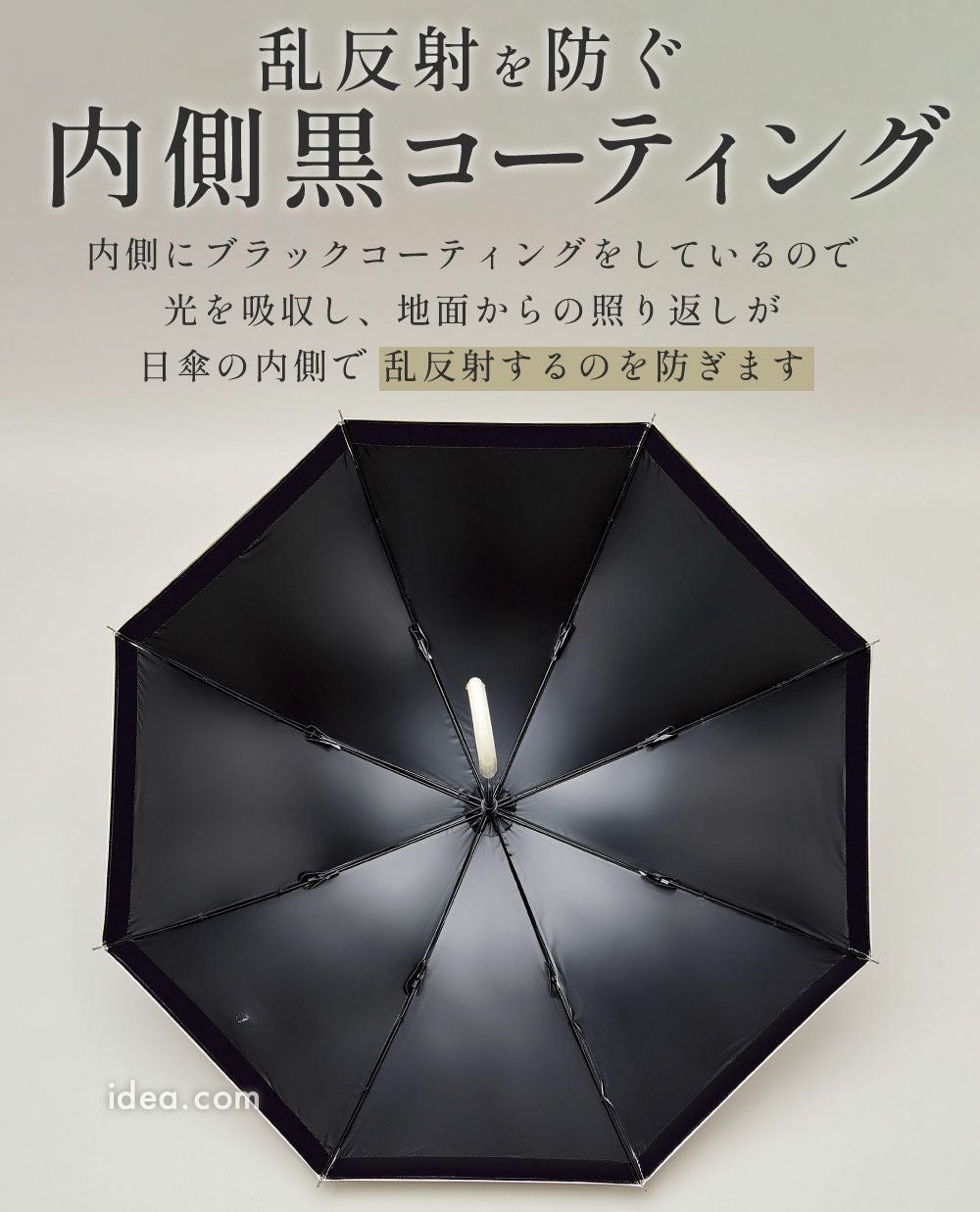 遮光性能は生地だけでなく、縫製や骨組み構造にも左右されます。 風に強い設計や、折りたたみ傘でも性能が損なわれにくい構造など、 日常的に利用しやすい工夫が施されています。