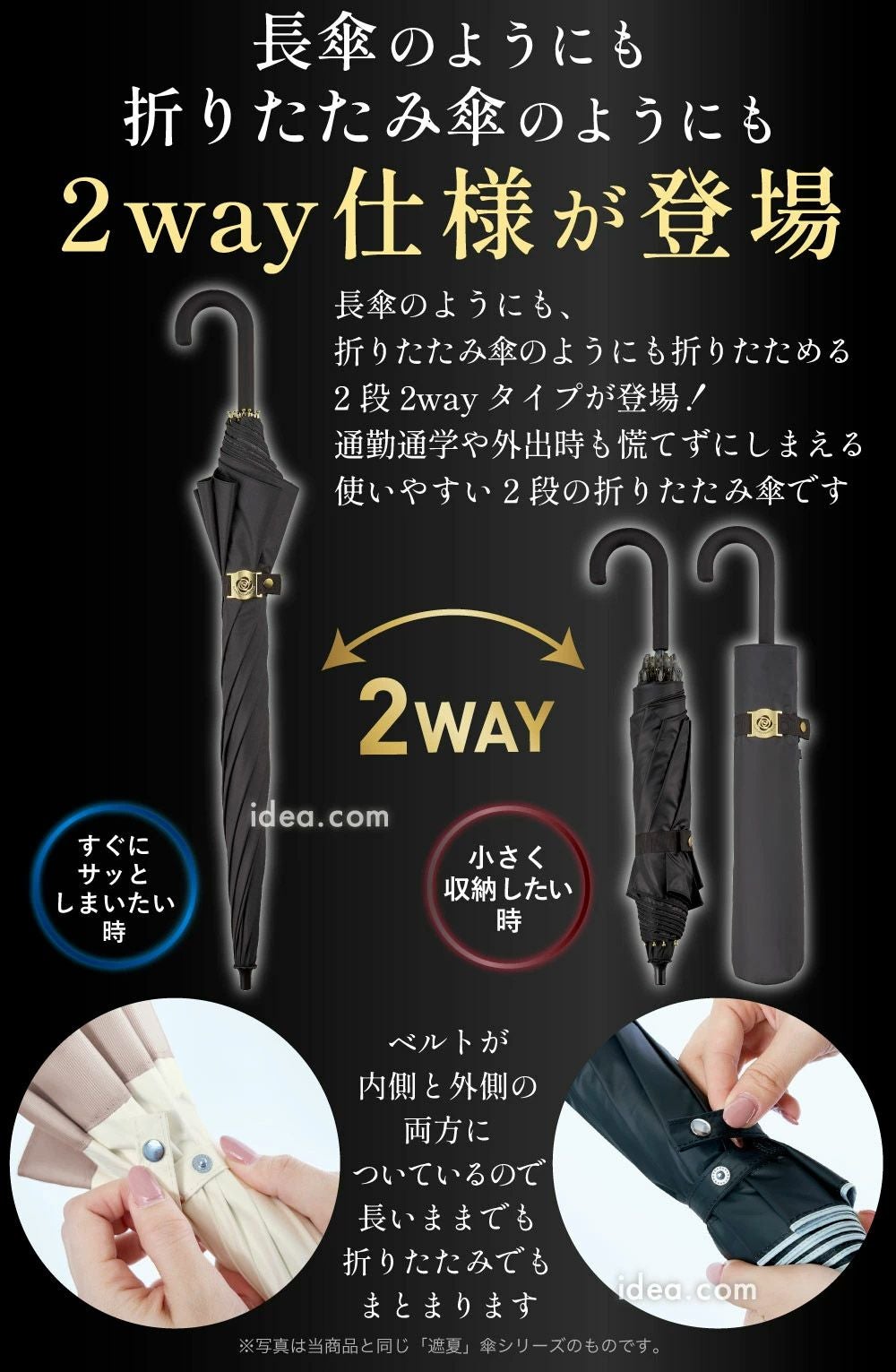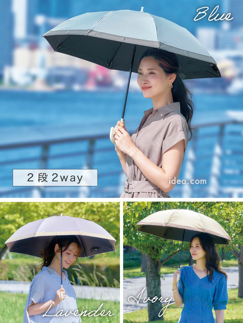 折りたたみタイプや長傘タイプなどサイズ展開も豊富で、 通勤・お出かけ・旅行など、さまざまなシーンにフィットします。