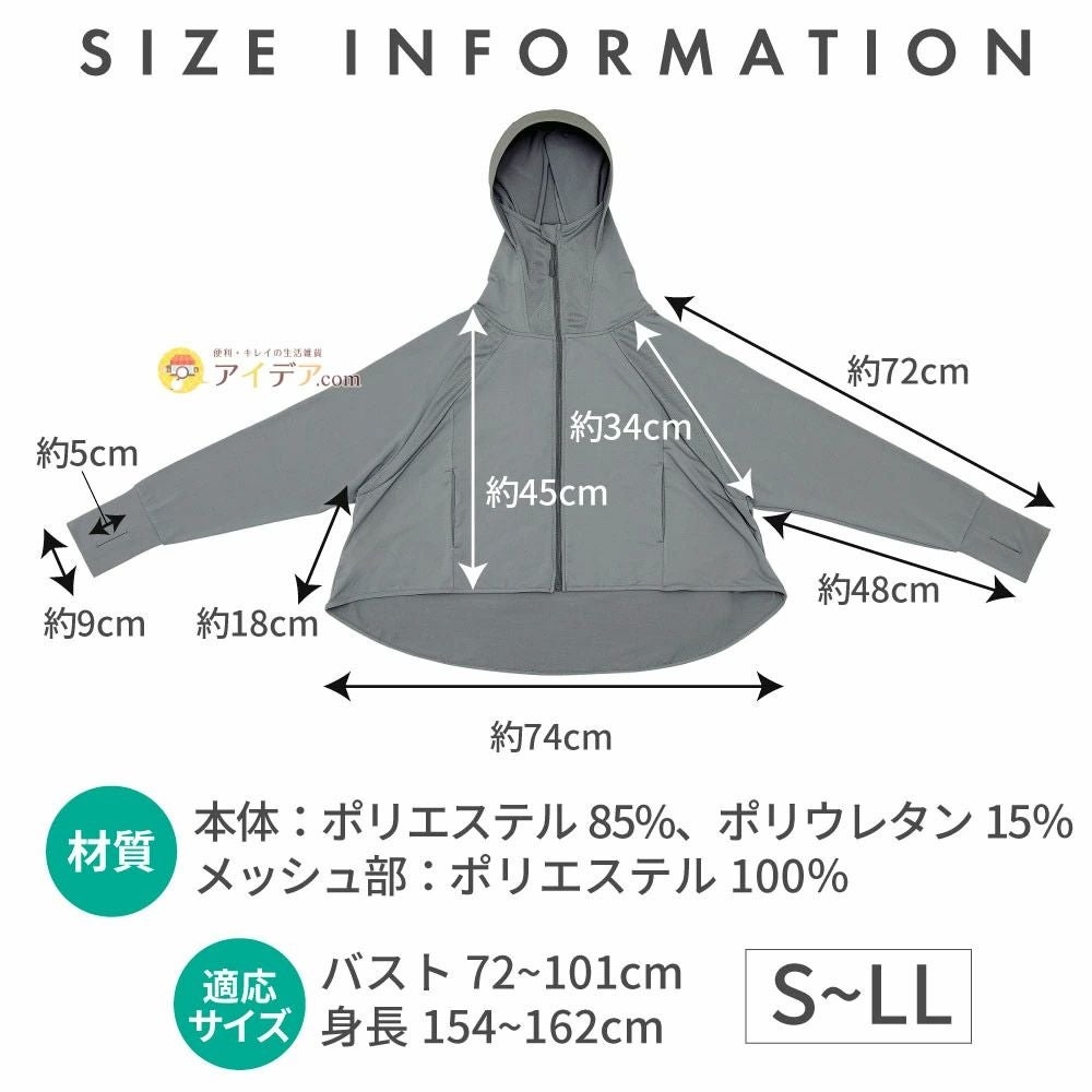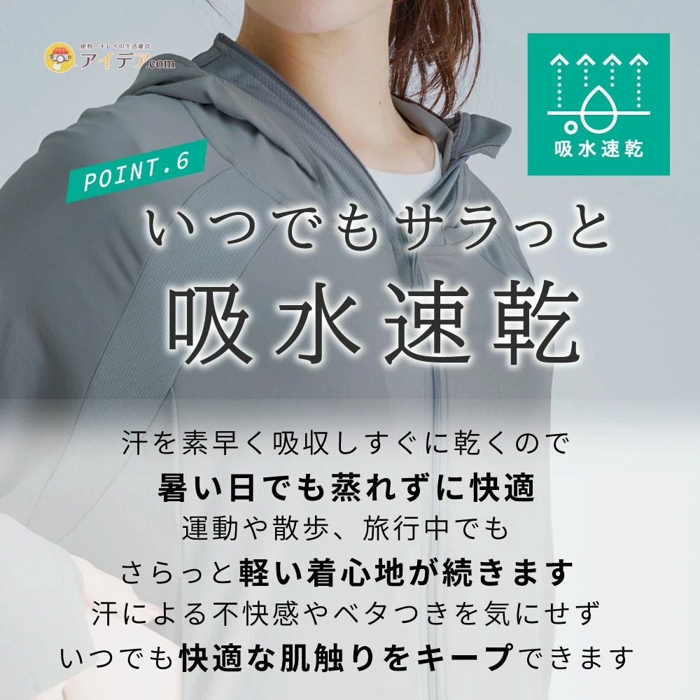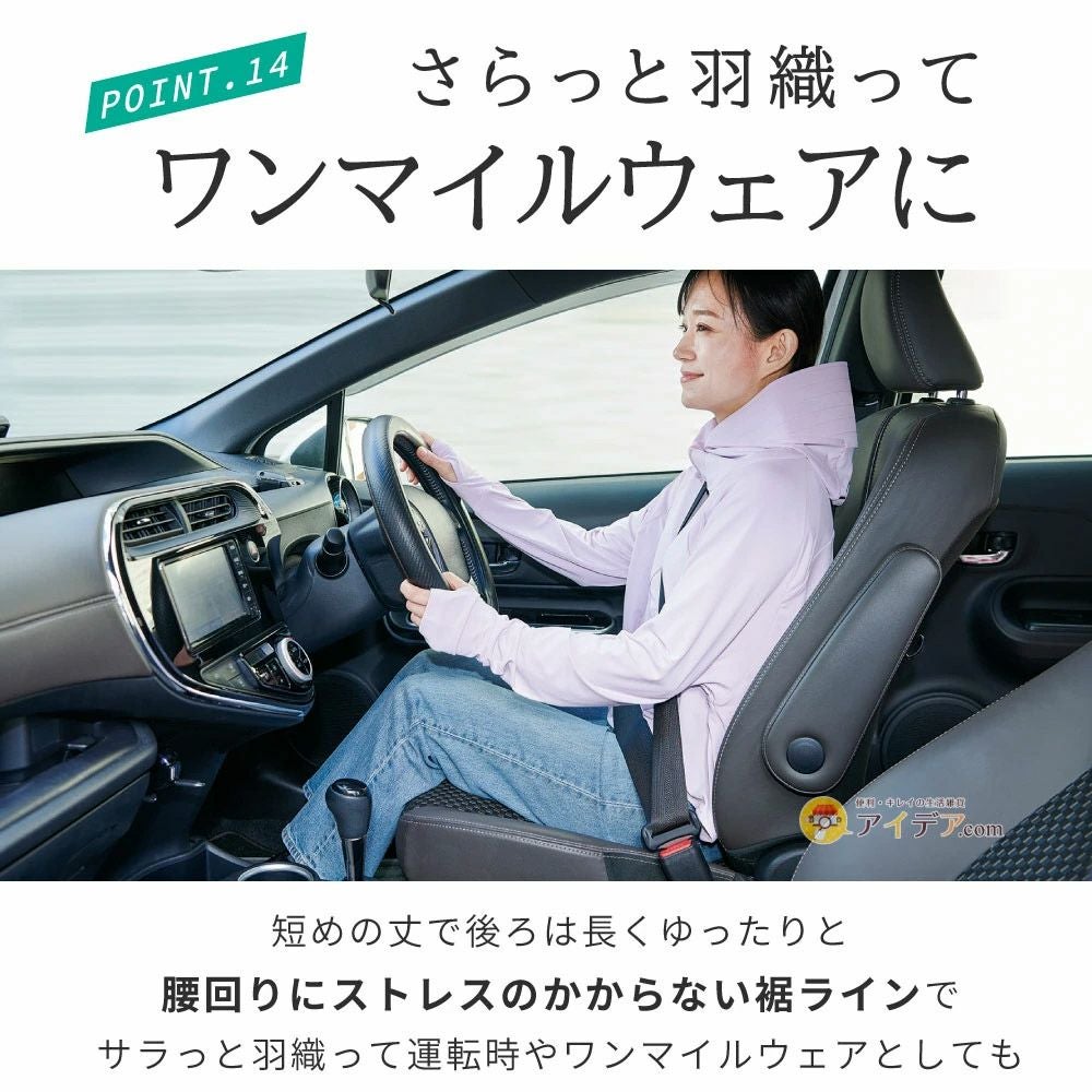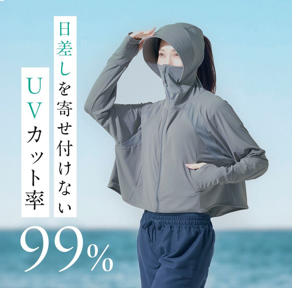 上半身オールカバー、1枚着るだけで役の多機能UVパーカー。 UVカット、遮熱性に優れた夏の必須アイテムです。