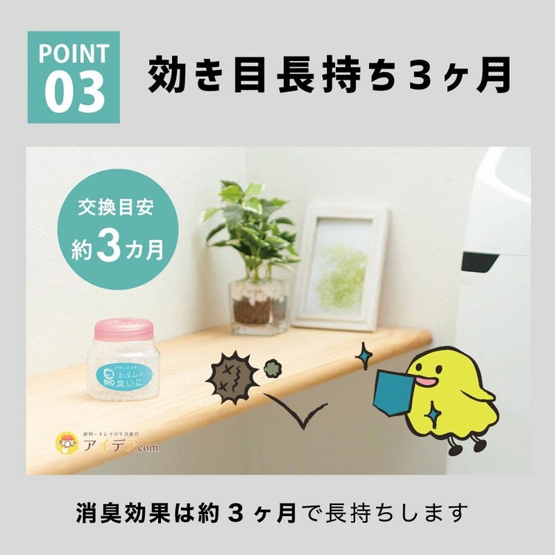 トイレに置くだけ。体にやさしい微生物が臭いを食べてくれる! バイオトイレの臭いにSP ![]() すぐに購入したい方はこちら ![]() ![]() ![]() ![]() ![]() ![]() ![]() ![]() ![]() ![]() ![]() トイレに置くだけで、「バイオ」が悪臭を食べてくれるので、嫌なアンモニアの臭いが気になりません。「バイオ」は天然の微生物。カビの繁殖や汚れの原因を食べて、空気をクリーンにしてくれます。元々存在している微生物なので、人体や環境にも害がありません。小さいお子さまやペットのいるお家でも安心ですね。効き目は約3か月間。ビーズが減ってくると取り替え時期なので、ぱっと見て分かるのも嬉しいですね。 |
