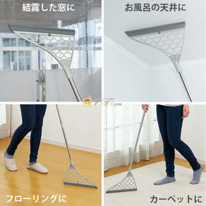 | スキージーのような設計で水気をサッとキレイにはける 水きりホウキ グレー ![]() ![]() ![]() ![]() ![]() ![]() ![]() ![]() ![]() ![]() ラクラクお掃除!樹脂製の先端で水をきって跡残りしにくい!お風呂の天井に。玄関先に。結露した窓に。フローリングに。水を掃いて濡れた場所をキレイに!樹脂製の先端で水をきって跡残りしにくい「水キリホウキ」。 裏面はペットの毛やホコリをキャッチしやすい形状となっており、カーペットに使用していただけます。 用途に合わせてヘッド両面を使いわけできるのが嬉しいポイント。柄の長さは約55.5cm or 約90.5cmで変えられるので、場所によって使いわけができて便利です。 |