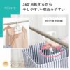 ■使用上のご注意 | ●ご使用前に本品に異常や破損がないかご確認ください。●干すものの形状や重さなどによっては、本品が回転しない場合があります。またサーキュレーターや扇風機など、風の強さによっても回転しない場合があります。●フック部およびキャップ部が緩んでいないか定期的にご確認ください。緩んでいた場合は、奥までしっかりと押し込んでからご使用ください。●無理に引っ張ったり、曲げたりすると破損する場合があります。●バランスを取る際、洗濯物を勢いよく動かすと、本品が破損したり、フック部やキャップ部が外れたりする場合があります。●材質の特性上、耐荷重に満たない場合でも、フック部が変形する恐れがあります。変形した場合は、本品のご使用をおやめください。●洗濯物の厚みによっては、干せない場合があります。●破損の原因となりますので、過度に重たいものを掛けたり、強い衝撃を与えたりしないでください。●1つの箇所に著しく荷重をかけないでください。●洗濯物は片寄らないよう、中央にバランスよく干してください。●ドア枠などに引っ掛けて使用する場合は、ドア枠や壁などに傷がつかないようご注意ください。●洗濯物を取り込む際は、下に引っ張ったり、無理に取り外したりしないでください。●強風時は屋外で使用しないでください。●長期間、直接日光にさらすと退色・劣化する恐れがあります。●ご使用にならない時は、屋内で保管してください。●包装用の袋で遊ばないでください。窒息など思わぬ事故の原因となります。●お子さまが本品で遊ばないようご注意ください。また、お子さまの手の届かない所に保管してください。●火気に近づけないでください。●本来の用途以外には使用しないでください。 | ||
