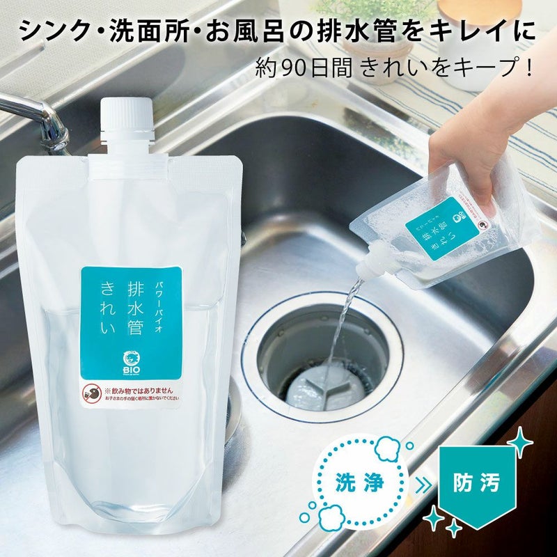 | ■バイオについて | ●バイオは生き物です。環境によって活動が変化するため、効果は使用状況により異なります。汚れや悪臭の原因となる物質が異常に多い場合、効果を感じるのに時間がかかります。●バイオが死滅するおそれがあるため、強酸、強アルカリ、塩素系のパイプ洗浄剤、消毒、殺菌、抗菌効果の高い洗浄剤やヌメリ取り剤、漂白剤と併用しないでください。●本品の特性上、特有の臭いがする場合があります。臭いによる品質の影響はありません。 | ||