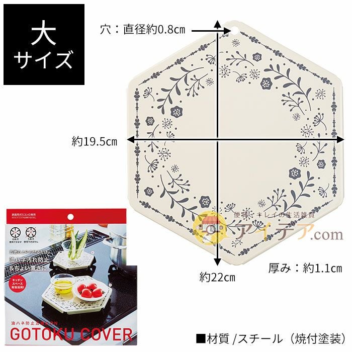 コンロの油跳ね防止やスペースの有効活用に。吊り下げて収納可能 油ハネ防止五徳にON(大) ![]() ガスコンロの五徳部分は、お料理後に汚れやすいですよね。