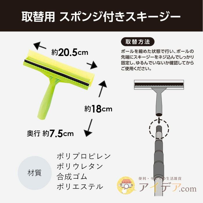 伸びる2wayロングモップ 取替用スポンジ付きスキージー 取替用モップ [コジット]