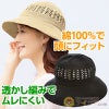 透かし編みのデザインがおしゃれで、綿100%のメイドインJAPANの機能的なUV帽子です。
