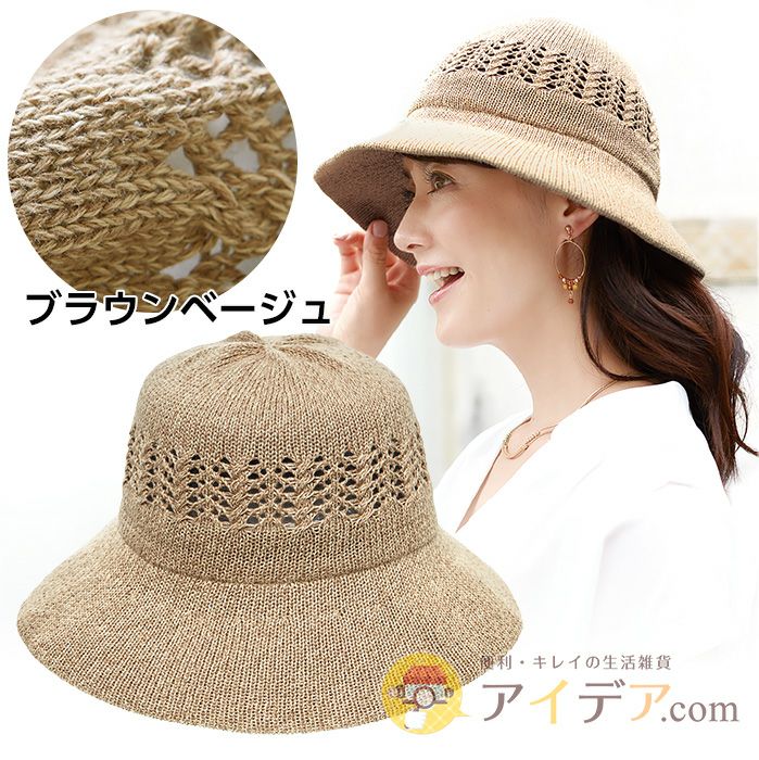 透かし編みの帽子って、手作り感があって、女性らしいやさしい雰囲気があるので素敵ですよね♪ この「シワになりにくい風通るUV帽子」は、そんな透かし編みで編まれたUV帽子です。 見た目だけでなく、通気性もよくて内側がムレにくく、それにしっかり紫外線対策できるので、夏にぴったりのUV帽子です。