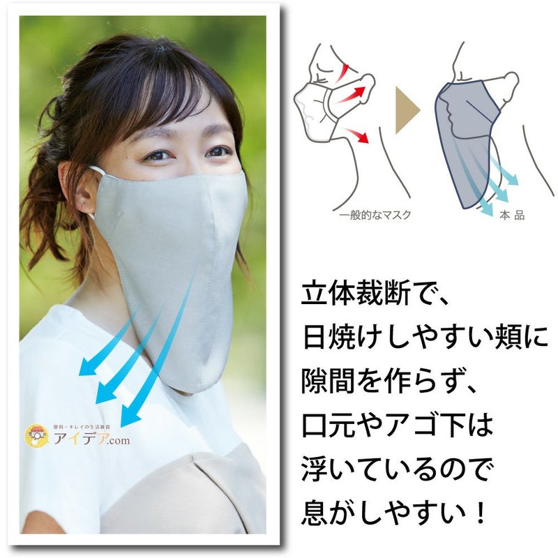 | 飛沫対策の布マスクとしても使えてUV対策もできる一石二鳥のアイテム ブレスフリーUVワイドマスク ![]() UVカット率(約)99%の生地を使った立体裁断で、日焼けしやすい頬に隙間を作らず、首までカバーをしてくれる3D設計のロングマスク。うっかり日焼けしやすいデコルテもしっかり紫外線からガードします。帽子と一緒に使うとパーフェクトカバー! 口元やアゴ下は浮いているので息がしやすく、飛散防止の効果も。これから暑くなる季節のおでかけにもピッタリのマスクです。 内側メッシュ生地に「Cool Pass」使用。「Cool Pass」は素早く水分を吸収し一気に拡散。その後、水分を蒸発させることにより、生地に滞留するころなく快適な肌ざわりを実現します。 ![]() ![]() ![]() ![]() ![]() ![]() ![]() コーディネートしやすく、お洋服にも馴染みやすい「デニムネイビー」と「ダンガリーグレー」の2色展開。 耳紐部分には調節ストッパーが付いているので、耳も痛くなりにくい仕様となっております。 |
