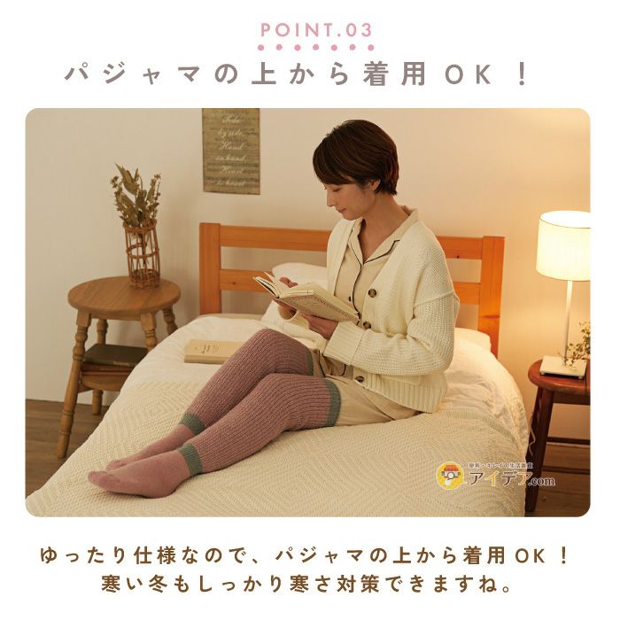 | おウチ時間の寒さ対策に ふとももまでのロングタイプ あったか靴下 備長炭くつろぎ脚のセーター ![]() ![]() ![]() ![]() ![]() ![]() ![]() ![]() ![]() ![]() おウチ時間の寒さ対策をしましょう!【備長炭くつろぎ脚のセーター】は、ひざ上ロングタイプで すっぽりあたたか♪備長炭繊維使用で冷えを予防し、暖かく! 伸びる編立てで空気を含んでふんわりやわらか。ゆったり仕様なので、パジャマの上から着用OK!寒い冬もしっかり寒さ対策できますね。リラックスタイムにも♪ ![]() |