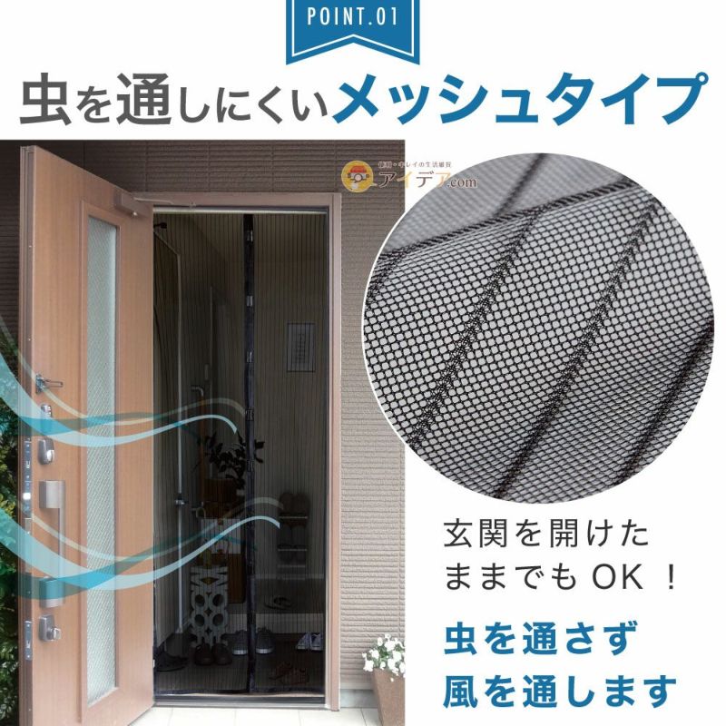 | 機能性 | カーテン 黒 玄関用 網戸カーテン 面テープ 簡易取り付け 虫を通しにくい メッシュタイプ プライバシーは保護して風と光は通してくれる 玄関 勝手口 リビング マグネットでピタッと止める 玄関用カーテン 虫除け 風を通す |