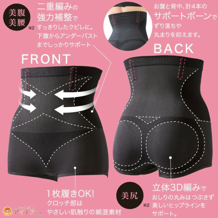 | 下腹からアンダーバストまでしっかりサポートしくびれを作る 3秒補整パンツ ![]() 3秒で細見え!穿くだけでウエストラインを引き締めサポート!ぽっこりお腹をしっかり引き締め! お腹周りは二重編みの強力補整で下腹からアンダーバストまでしっかりサポート。お尻周りは立体3D編みなので、お尻の丸みをつぶさずに美しいラインをサポートします。美腹も美尻も夢じゃないですよ! ![]() ![]() ![]() ![]() ![]() ![]() ![]() ![]() ![]() お腹と背中に4本のサポートボーン入りで、ずり下がりや丸まってしまうのを抑えるのでストレスフリー!クロッチ部はやさしい肌触りの綿混素材なので1枚履きもOK。 【3秒補整パンツ】でカンタンに美腹も美尻も手に入れてくださいね! |