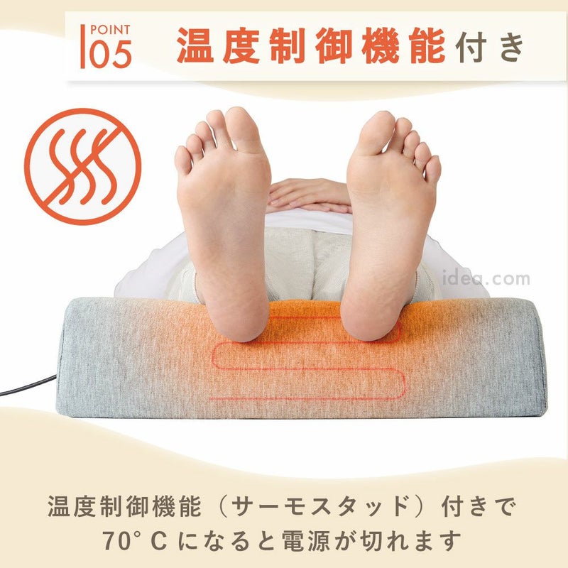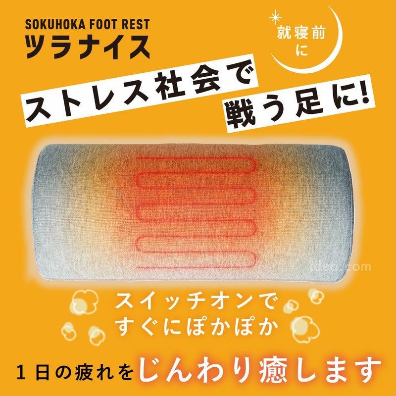 | つないで即ほかほか!就寝時に足元あったか&足を高くしてスッキリ! ソクホカ足枕 ツラナイス ![]() すぐに購入したい方はこちら ![]() ![]() ![]() ![]() ![]() ![]() ![]() スイッチオンで即!足元ぽかぽか&リラックス、冷えも疲れも同時ケア 寒い夜や長時間のデスクワークで、足元が冷えてつらい…そんな悩みを解消するのが【ソクホカ足枕 ツラナイス】です。USB給電式ヒーターを内蔵し、つないだ瞬間から足元をじんわり暖めます。ドーム形状のクッションが足首やふくらはぎをやさしく支え、足を高い位置にキープすることで血流を促進。冷えによる不快感やむくみ、だるさを和らげ、スッキリ軽やかな足へ導きます。 温度は高温(約40~45℃)、中温(約35~40℃)、低温(約30~35℃)の3段階調節が可能。季節や体調に合わせた快適な温かさを選べます。安全面も充実しており、温度制御機能(サーモスタッド70℃)と約150分で自動電源OFFになるオートオフ機能を搭載。就寝時や作業中のうっかり切り忘れにも安心です。 USBコード長は約1.6mと余裕があり、モバイルバッテリーやUSB-ACアダプターを使えばベッド、ソファ、オフィスなど様々なシーンで活躍します。カバーはやわらかなポリエステル素材で心地よく、沈み込みすぎない適度な弾力が長時間の使用でも快適さをキープ。 さらに腰や背中に当てればあったかクッションとしても利用可能。冷え性対策、むくみケア、リラックスタイムのお供として一年中使える多機能設計です。毎日の冷えや疲れから足を解放し、心も体もぽかぽかにしてくれる、頼れるパートナーです。 |