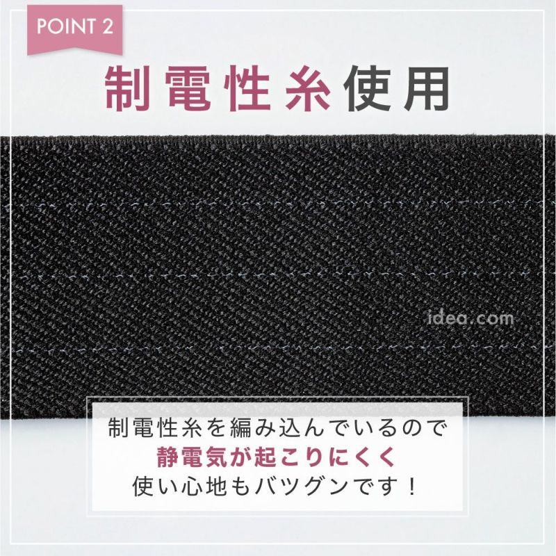 | ■使用上のご注意 | ●淡色、白色の生地には色移りする可能性がありますのでご注意ください。●本品には、帯電防止効果がありますが、日常使用を目的としたもので医療用器具、医療用品、電気工事などの特殊状況下での保安用品ではありません。体内の電位検査(心電図など)を受けられる場合は、検査内容への影響を考え、検査中のご使用はお避けください。●ペースメーカーなど、体内植込型治療器をお使いの方は、必ず専門医にご相談の上ご使用ください。●帯電防止効果は人や環境、使用状況などにより個人差があります。故意に帯電物に近づけたり、通電させたりしないでください。●バックルや調節金具で指を挟まないようご注意ください。●火気厳禁。 | ||
