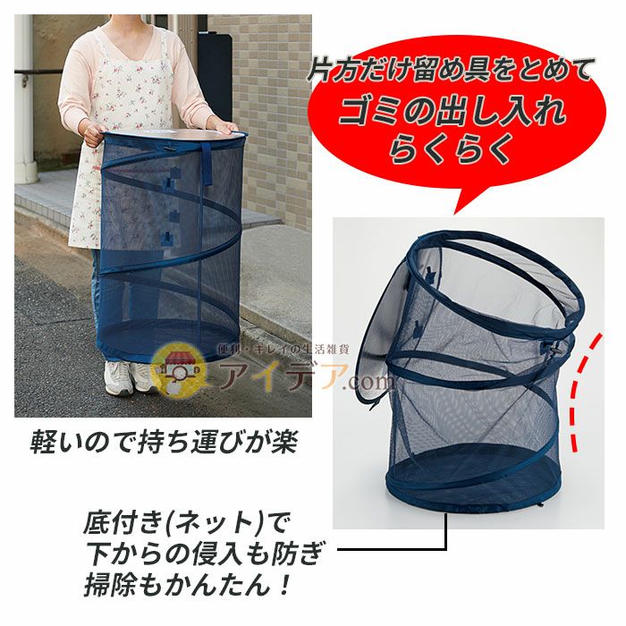 | カラスのゴミ荒らしを防止!ゴミの個別収集に最適なドラムネット のびのびカラス避けドラムネット 100L ![]() 朝出したゴミがカラスに荒らされて散らかっていると、掃除が大変で、中身が見られてしまうので嫌ですよね…