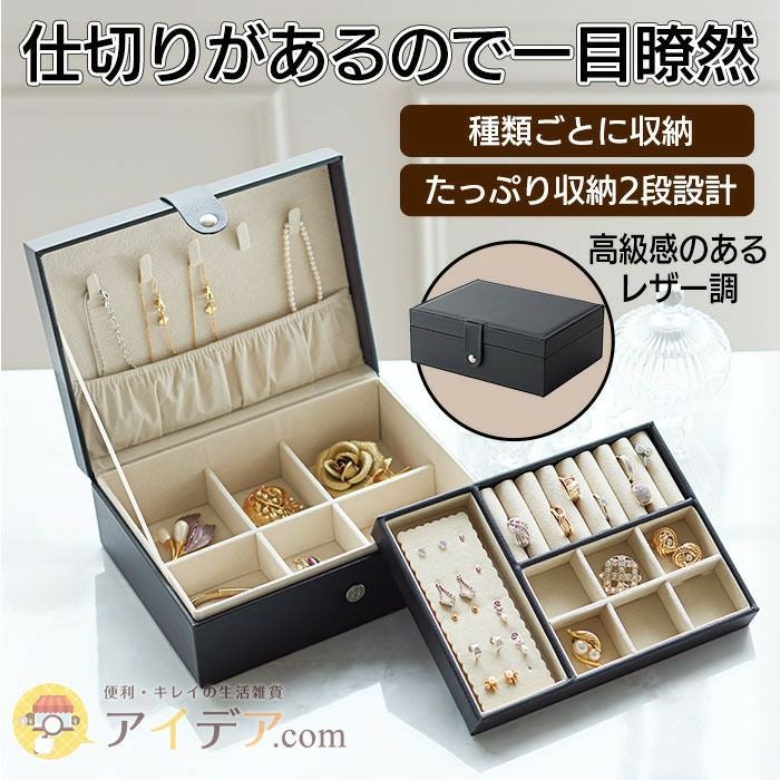 「取り出しやすいジュエリーボックス」なら、たっぷり2段収納でアクセサリーごとに分類できるので、すっきりきれいに収納できます。