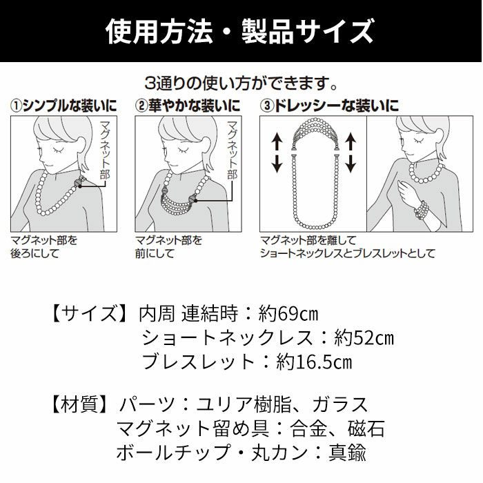 ■製品サイズ(約) (内周)連結時:69cm ショートネックレス:52cm ブレスレット:16.5cm