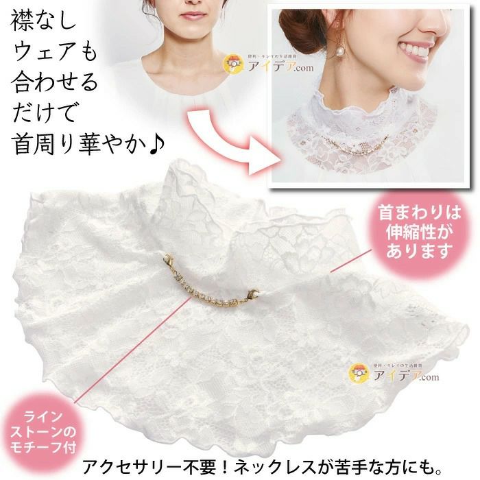 モチーフ付フォーマルレースタートル ホワイト:襟なしウェアも合わせるだけで首周り華やか♪