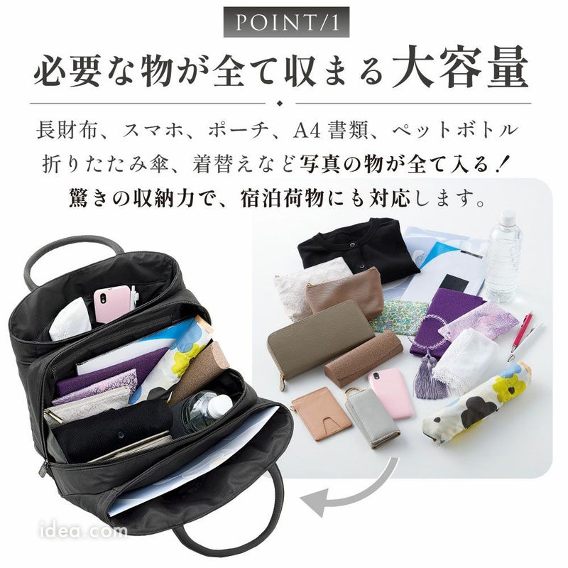 | 機能性 | 大容量 自立型 軽量設計 マチ広 約12cm A4収納可 ペットボトル収納 ループ付き 内ポケット オープンポケット 型崩れ防止 持ち手しっかり ファスナー開閉 ブラックフォーマル対応 高級感あり サブバッグ不要 収納力抜群 安定感あり 整理整頓しやすい |