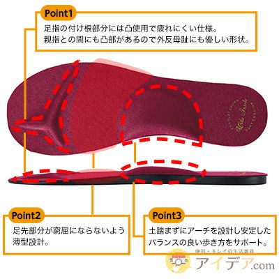 靴のサイズが合わない時にインソールは便利ですが、足先部分が窮屈になったり、足の甲が靴にあたって痛くなったりした経験はありませんか? この「歩楽幅広インソール」は、足指の付け根部分には凸使用で疲れにくい仕様。 また、足先部分は薄型設計なので、窮屈になりにくいんです。