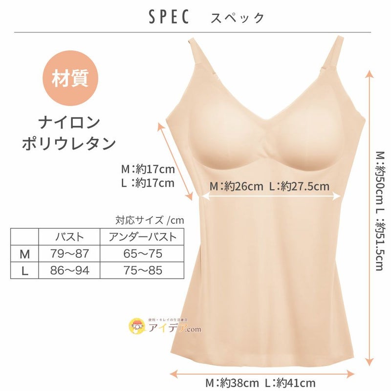 | ■製品サイズ(約) | バストM79~87cm L86~94cm、アンダーバストM65~75cm L75~85cm | ||