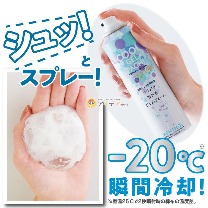 | -20℃の瞬間冷却!猛暑対策やアウトドア、スポーツ後のリフレッシュに。 COOL GELPACHI ![]() ![]() ![]() ![]() ![]() ![]() 猛暑対策やアウトドア、スポーツ後のリフレッシュに最適な冷却ジェルフォームスプレー♪パチパチ弾けるジェルフォームで炭酸のような爽快感!!顔や腕、脚など冷やしたい部位にあててご使用ください。 ※瞬間的に冷たくするものです。長時間持続するものではありません。 ![]() |